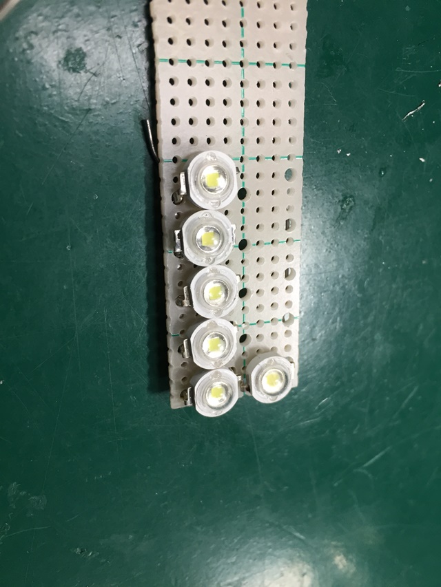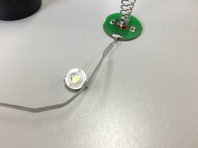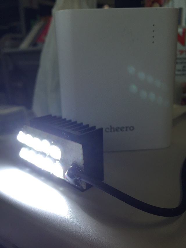 あと熱をかなり持ちます。上記写真はケーブル・放熱板をホットボンドで止めてますが10分ぐらい点灯すると溶けます。よって連続使用時間は10分まで。