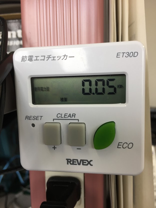 積算消費電力は0.05kWだったそうです。50~59Wですね。小数点以下2位までしかないので1の位が分かりません。