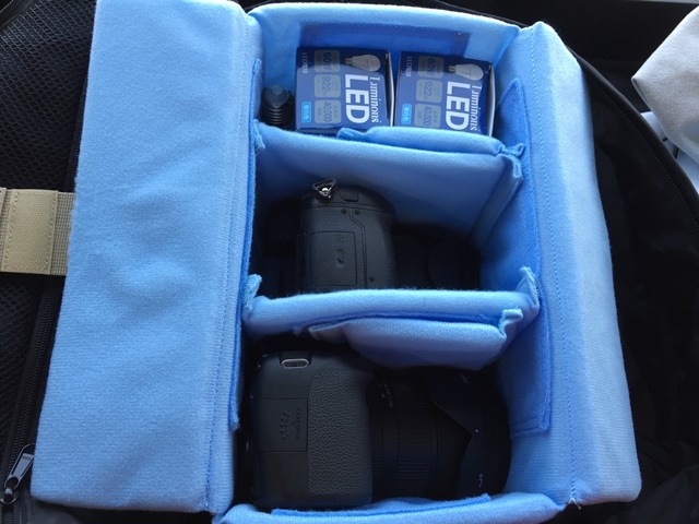 まずはご覧のGH3/EOS 70D/LEDの電球が二つ入ってもまだ余裕なぐらい大きい生産終了で安く買い叩いたインナーボックスを用意しました。