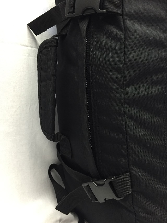 片方のサイドにも取っ手が付いていて網棚にカバンを上げたり持ち回りに便利になっています。