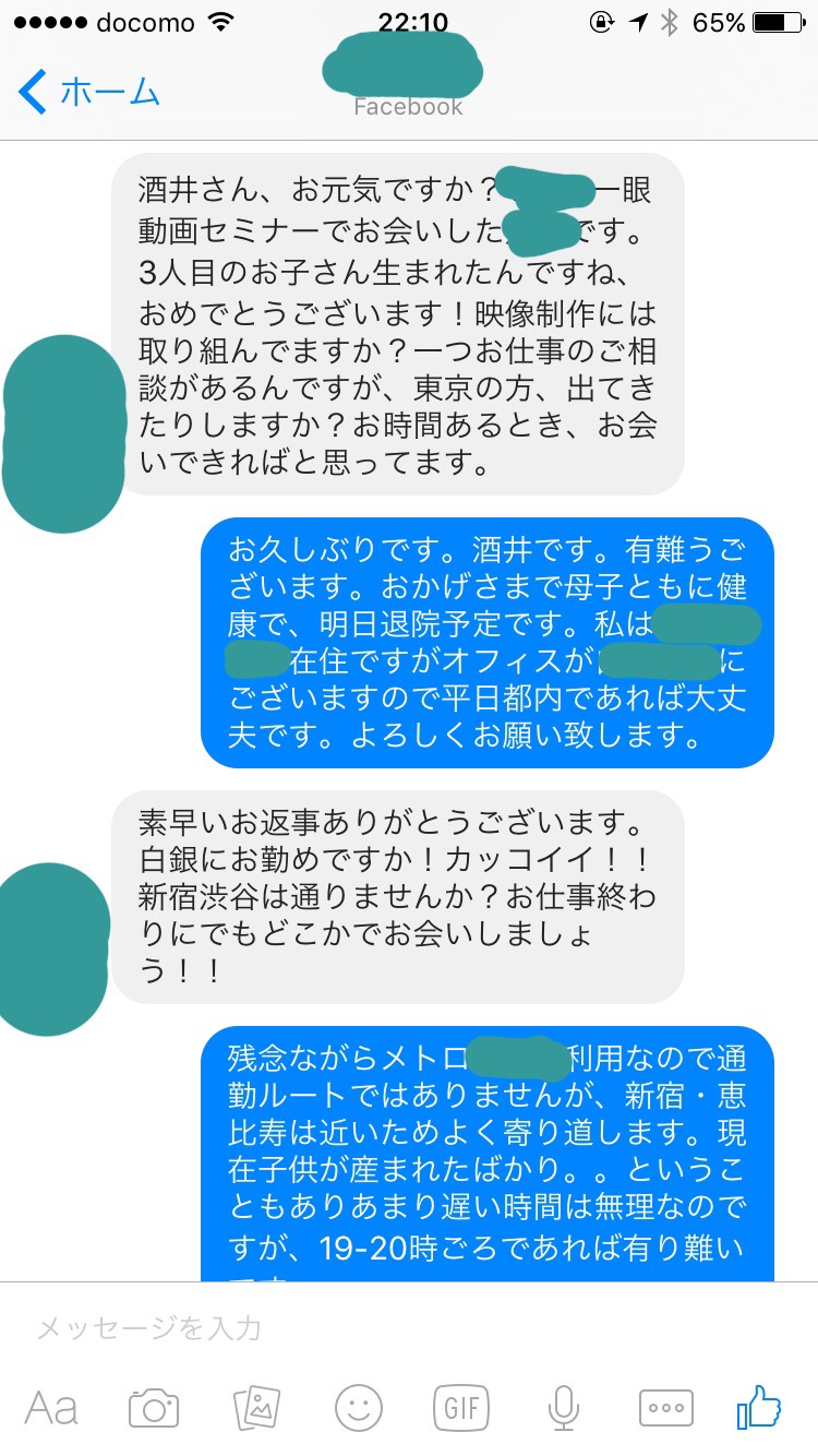 大体セミナーから1ヶ月ぐらいでしょうか?突然Facebookのメッセージが届きました。
