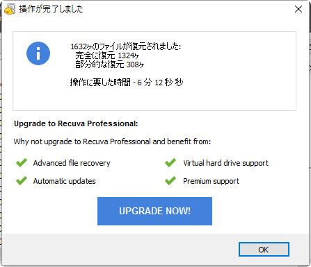 1632個のファイルが復元され、1324個のファイルが完全に復元されています。