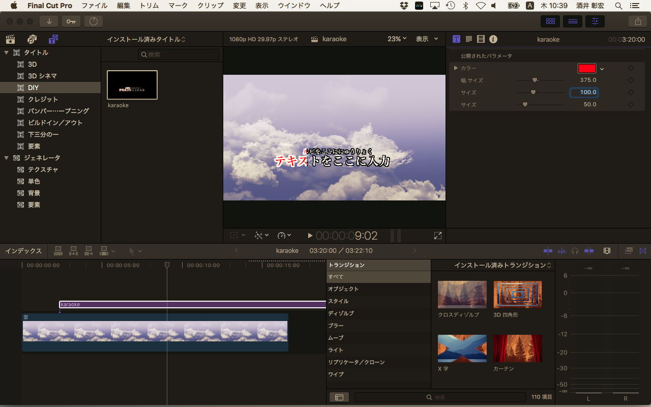 これでカラオケ用字幕のFPC Xタイトルは完成。一応今回制作した完成版をコチラからダウンロードできるようにしておきます。ムービーのMotion Templates->Titlesの中の好きなカテゴリのフォルダに入れれば使えるようになるハズ。