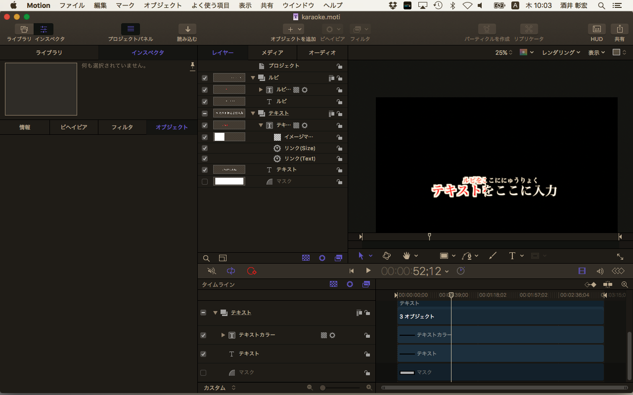 これだけで、FCP Xからテキスト・ルビそれぞれ一度だけ入力すれば変更前・変更後のテキストそれぞれに入力したテキストが反映されるようになります。