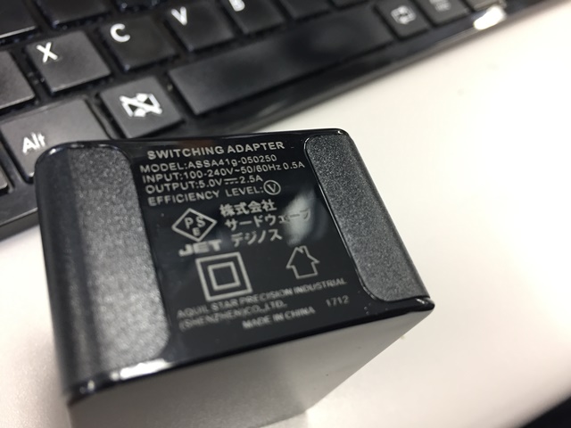 付属していたUSB DCアダプタは5V/2.5Aの大容量ですので色々使えそうですね。