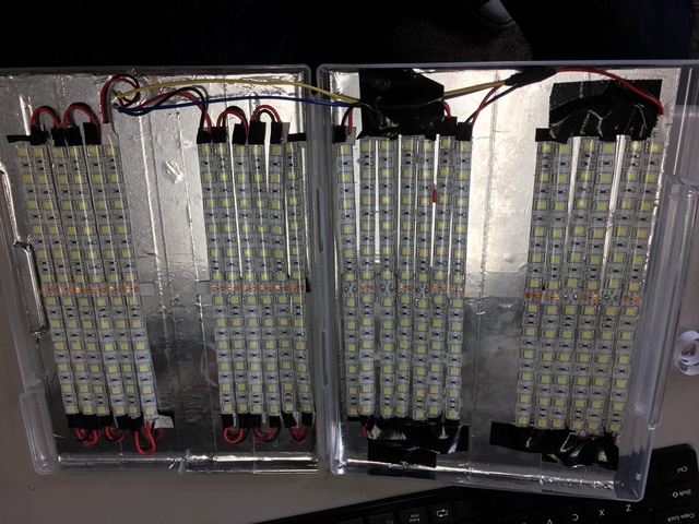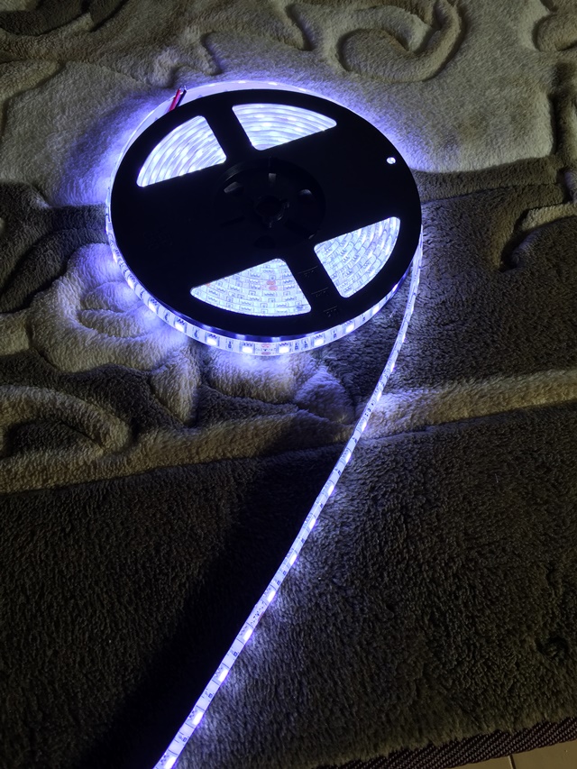 可変抵抗器とかを追加すれば光量調節も可能になると思いますし、電球色のLEDと交互に取り付け、それぞれに可変抵抗器を取り付ければ色温度の調整も可能になりそうですね。