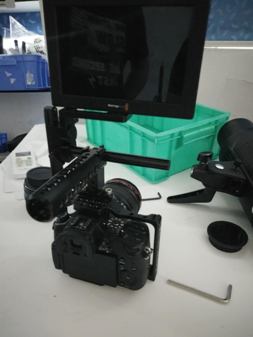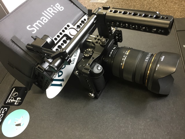 こんな感じでGH4をネジ穴がいっぱいついたケージと呼ばれるサポート器具に取り付け、さらにVA4Kを取り付けていました。