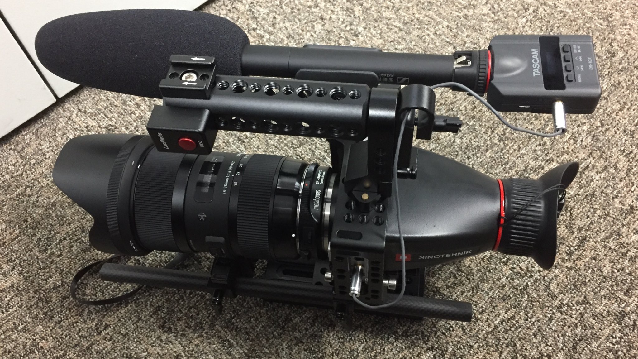 smallrig社のケージに入れたBMPCCにMKE600を乗せてDR-10XからBPMCCに接続するとこんな感じです。かなり小型に高画質・高音質両方を兼ね備えた撮影システムが構築できました。