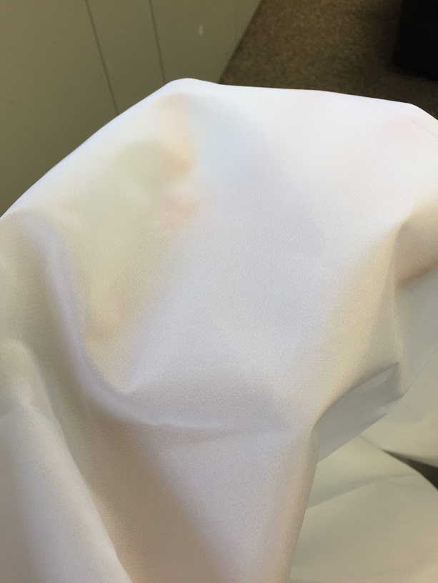意外としっかりした生地。手を入れてみたけどこんな質感です。蛍光漂白剤みたいな青みが買った白ですね。これが色温度にどう影響するのか。