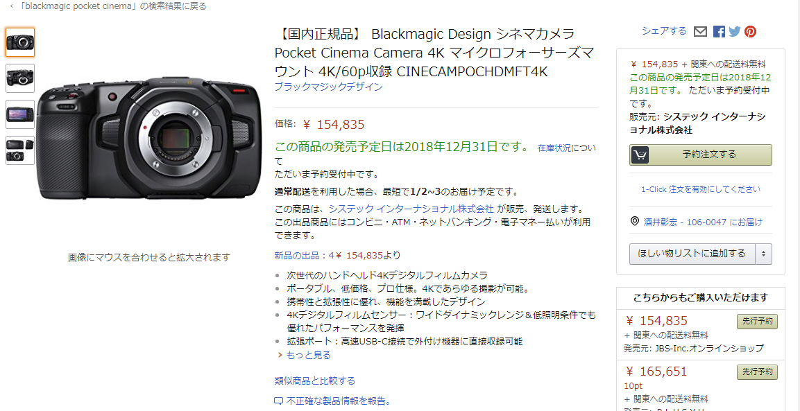 どうやら9月発売。とされていたBMPCC4Kの出荷が幾つかのサイトで12月となっている。という事によるもののようです。