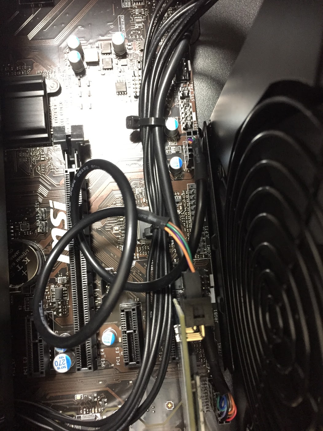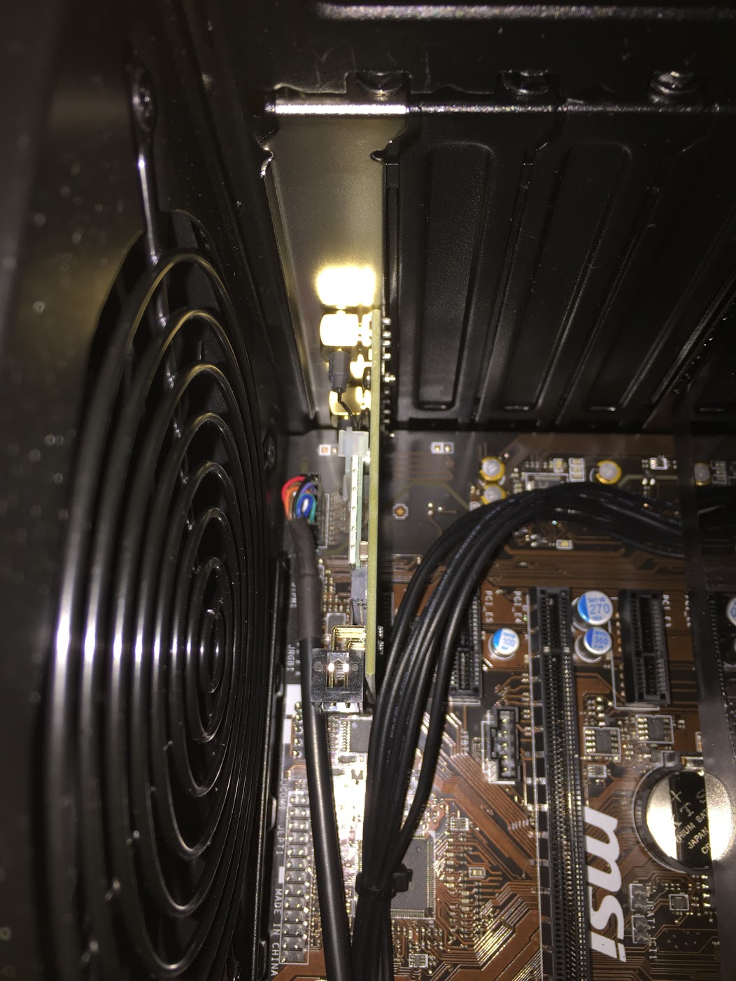 PCI Express x1なので該当する部分に取り付け。私は何となく一番下を選びました。もしかしたら電源のファンに近いしあんまりよくないかも。