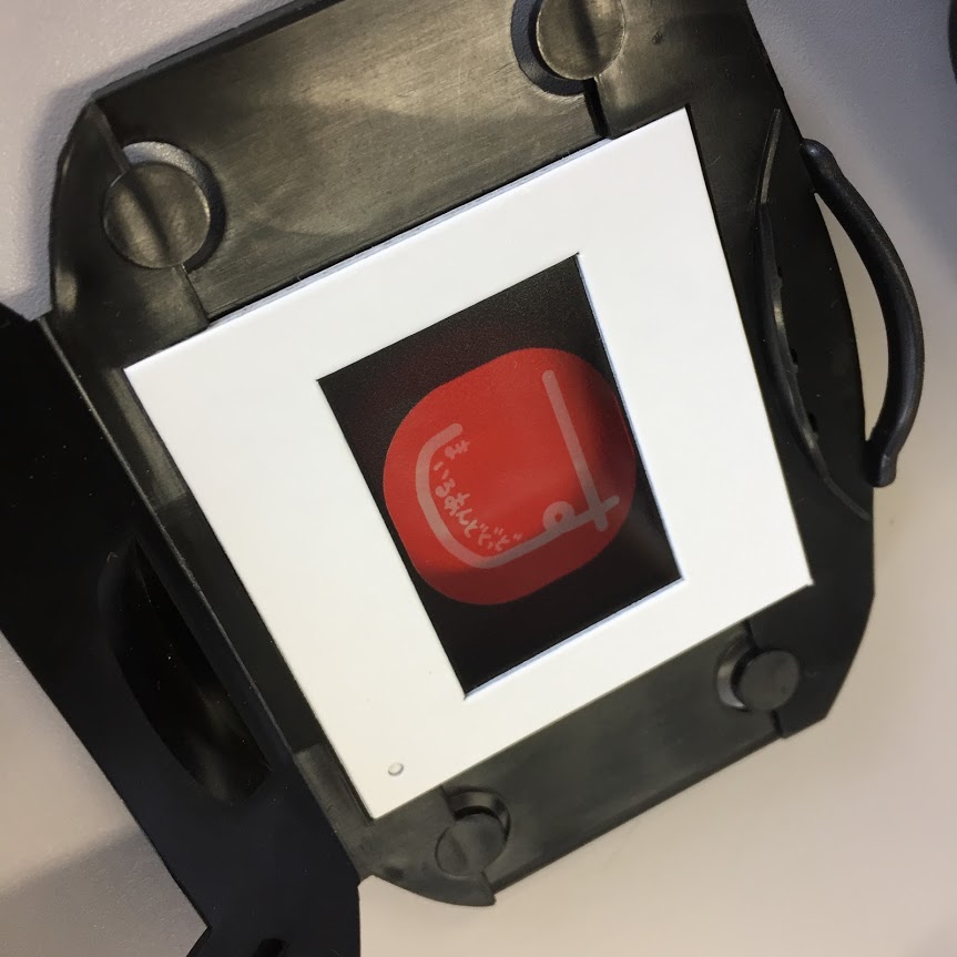 早速仕込んでおいたスマイルアンドグッドロゴのフィルムをセット。