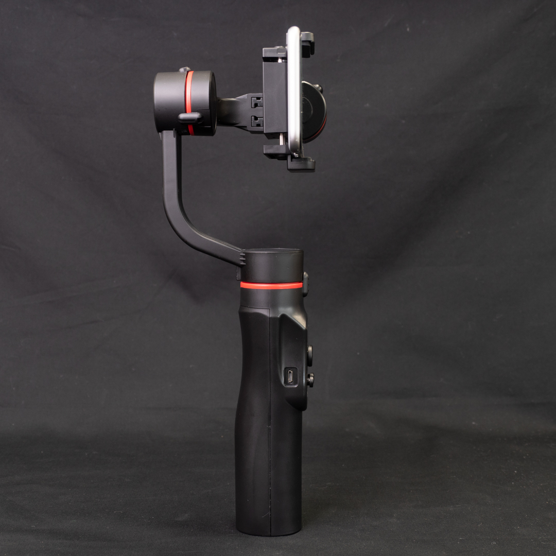 チルト(縦方向)パン(横方向)ロール(斜め方向)の、映像のブレの原因となる撮影者の微妙な動きをセンサーで補足し、それぞれの合計3か所に設けられたブラシレスモーターを使用して動きを相殺し映像に出るブレを無くす。それが3軸ジンバル。『スタビライザー』とも呼ばれていて、かつては映画などの商業撮影で多く使われていましたが、ブレの大きいドローンにカメラを搭載するために小型化・低価格化の技術が進み、ついに一般ユーザーのスマートフォンを搭載できるような製品が発売されてきました。