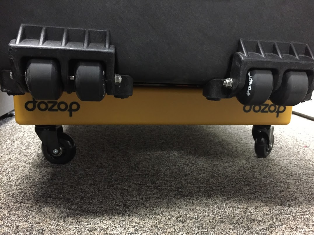 Pelican1650ケースを床に置いていると移動が結構大変だったのですが、下に敷く事で滑らかに移動できるようになりました。これは便利。ペリカンケースがそのまま台車になったようなものなのでこの上に色々置いて移動できます。
