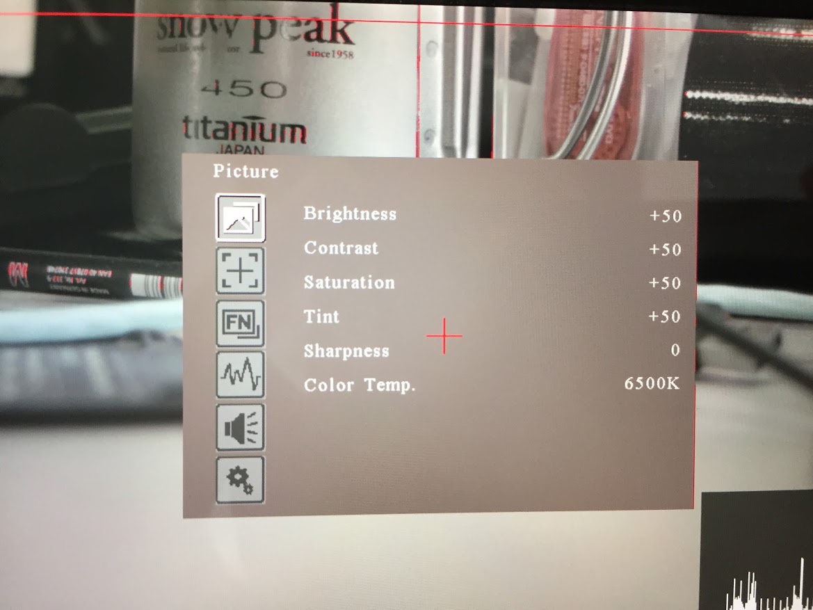 MENUボタンを押すことで設定メニューを表示することが出来ます。<, >ボタンで移動、MENUボタンがEnter。EXIT/F1ボタンで戻ります。