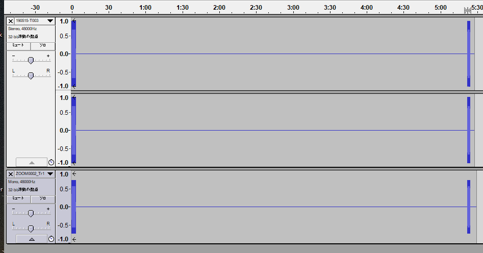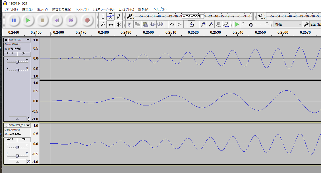 つまり、手持ちのZoom F8nとH6では約5分で60サンプルのクロックずれが発生することになります。