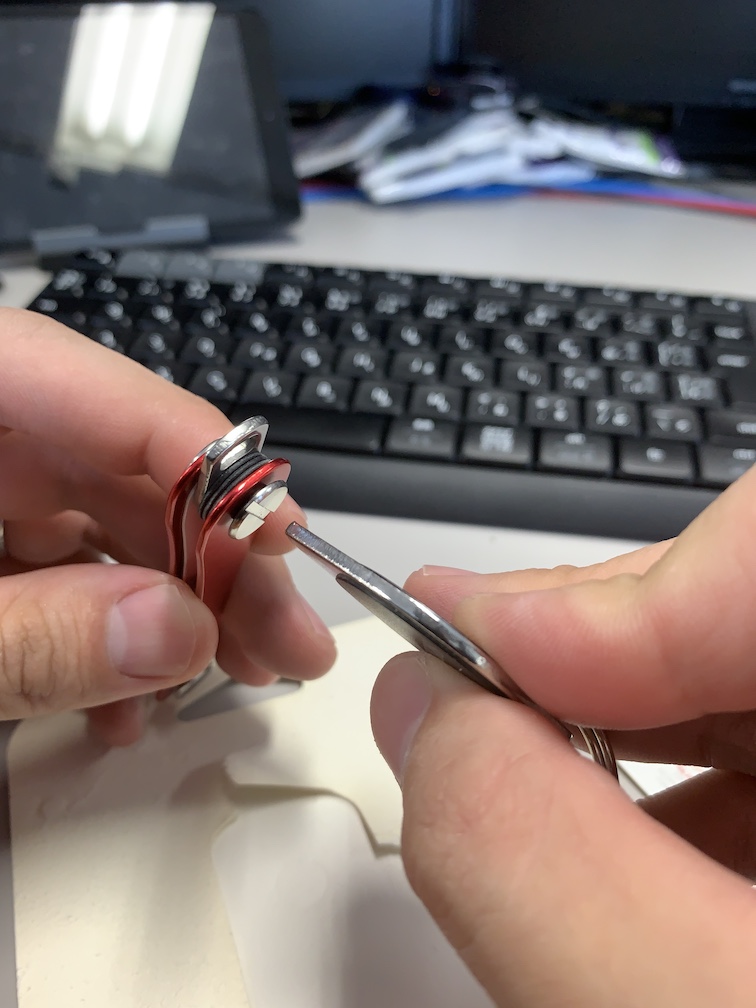 キーリング部分に合うリングを探してたらPeakDesignのストラップだかを買った時に付いてきたアーレンキーがあって、一緒に取り付けようかな。と思ったけどどうもハマらなかったのでこれはまたの機会にしました。