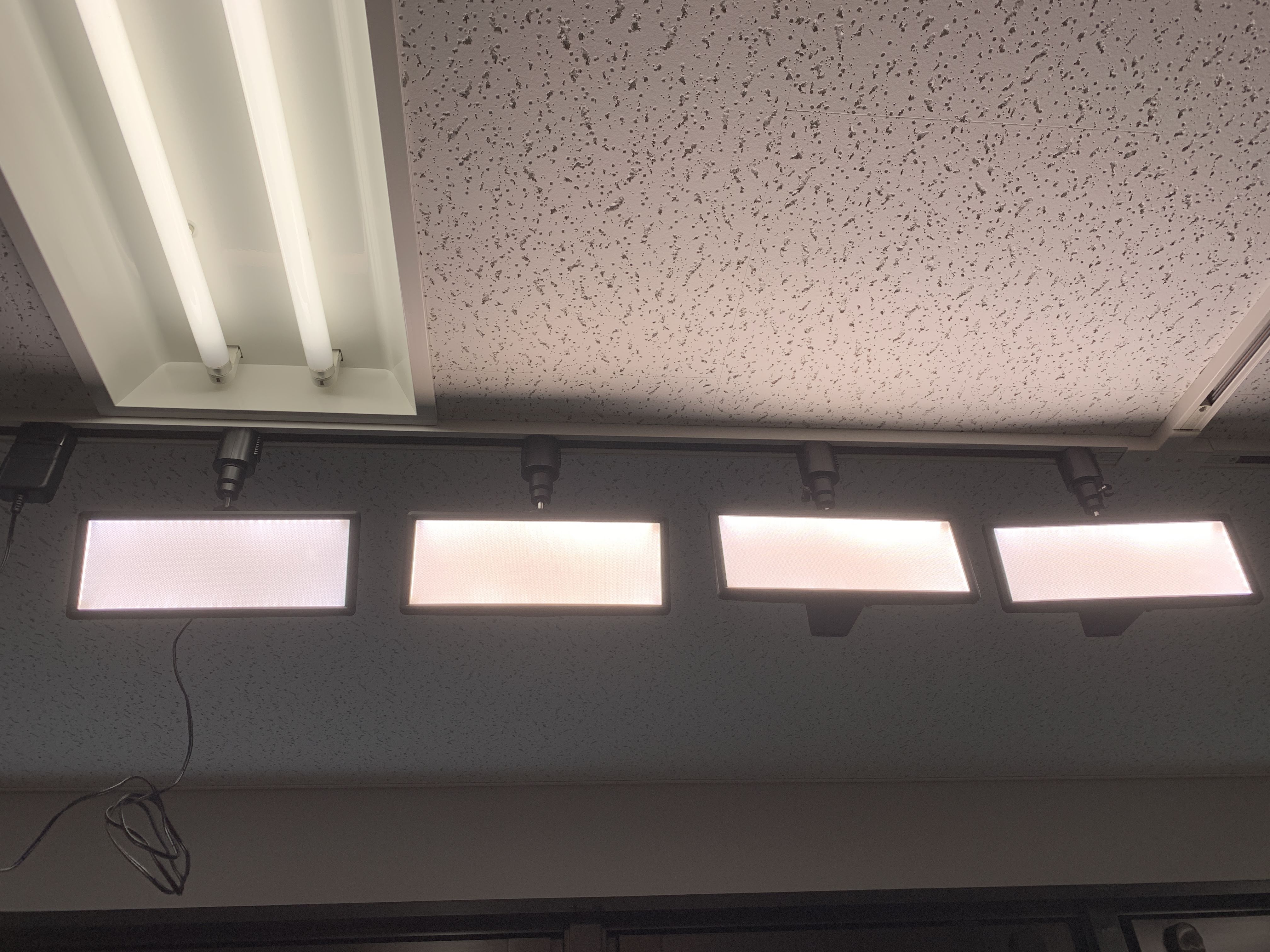 じゃじゃーん。完成。早速職場のダクトレールに取り付けてみます。