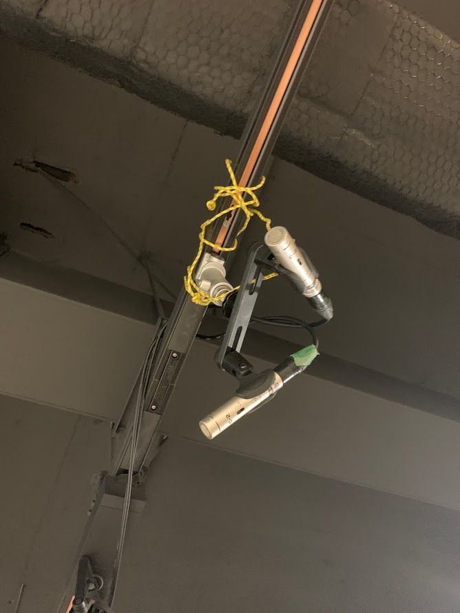 マイクもこんな感じで吊りました。落下防止のために登山用の細引きで結んであります。