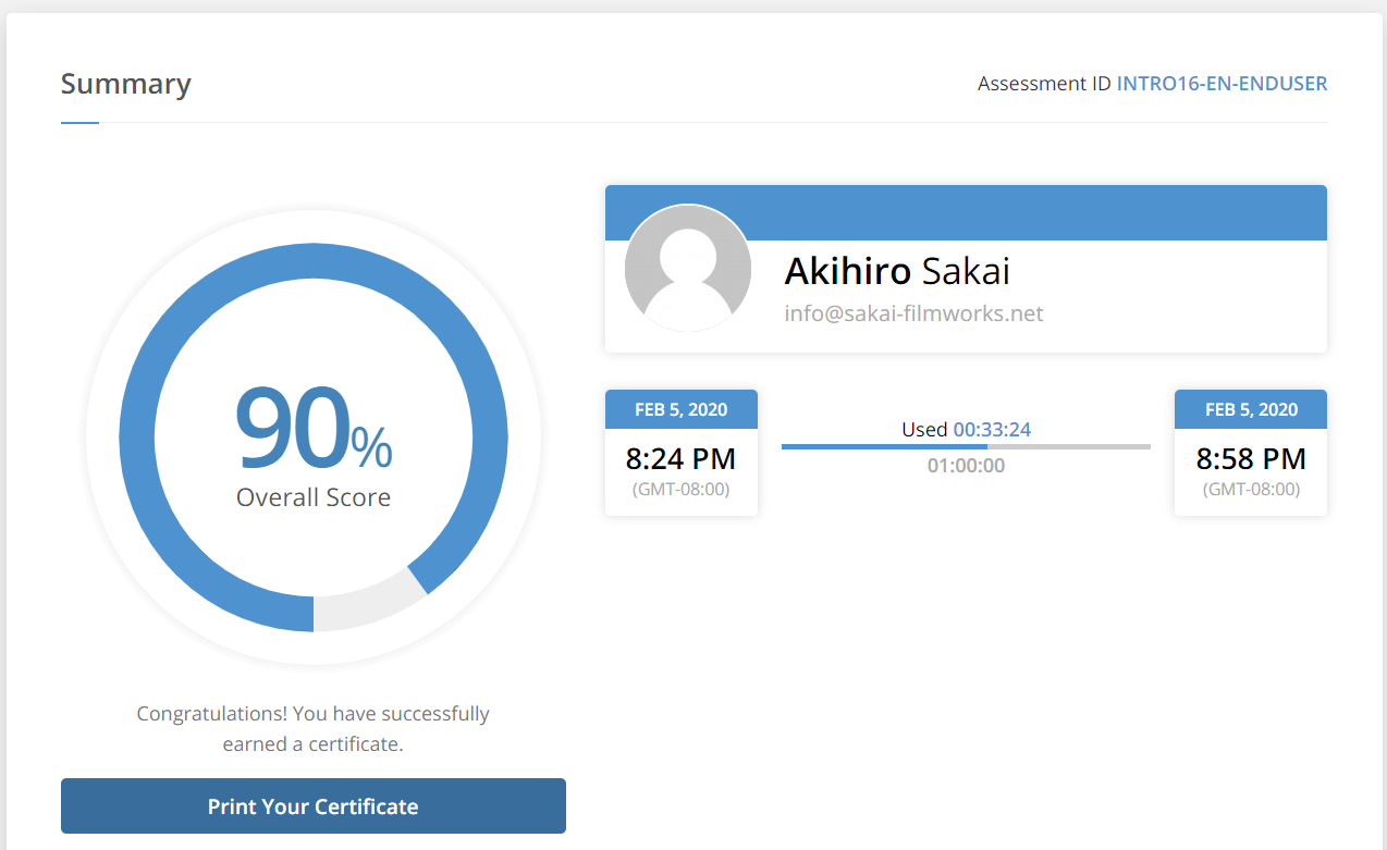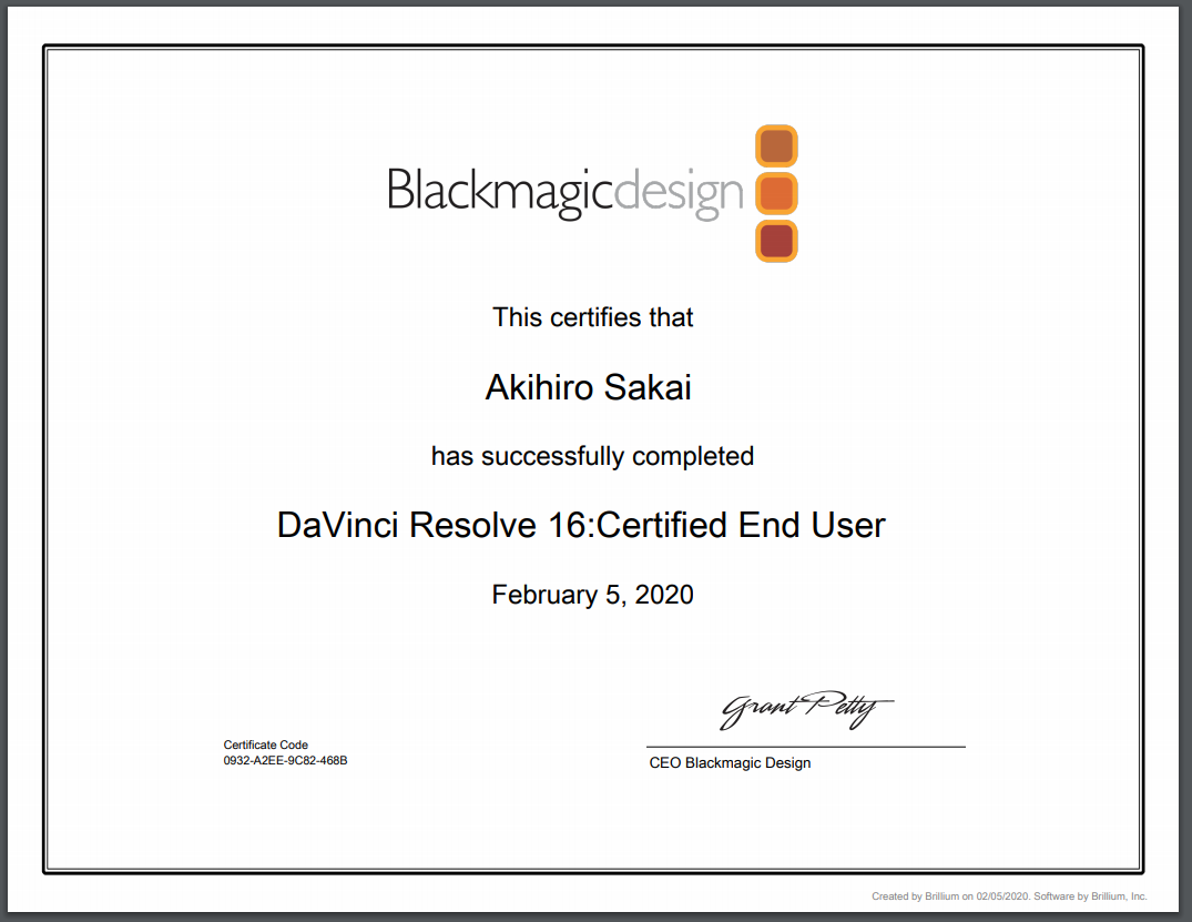 さて、これからは「DaVinciResolve”認定エンドユーザー”のサカイです!」って自己紹介できるわけですね。(微妙だなこれ)