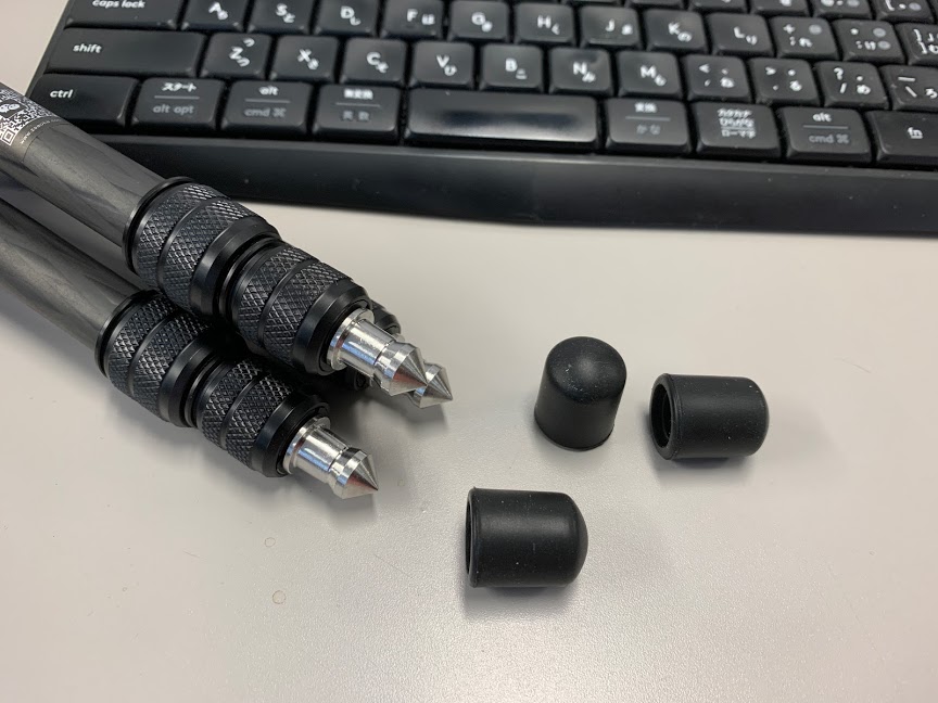 ゴムキャップを外すとスパイクが登場。私はあまり使いませんが、屋外で多く使う人には嬉しい機能では。