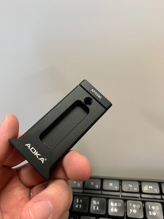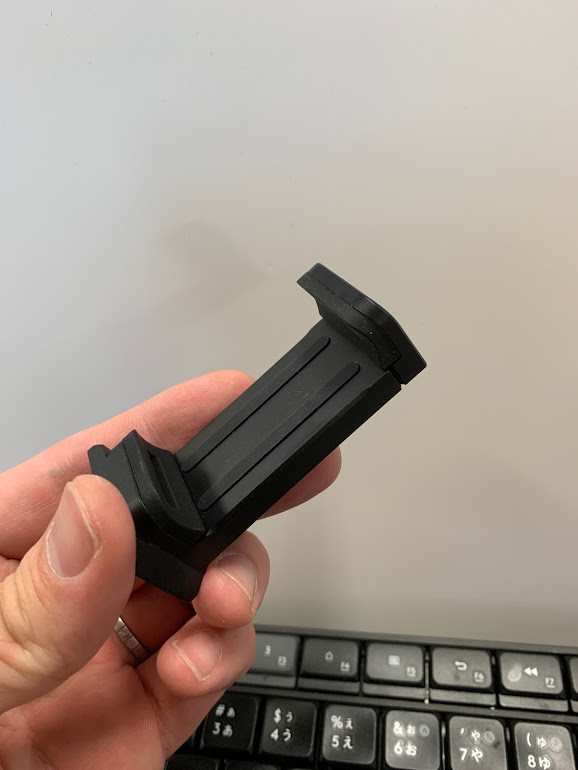 付属しているスマホホルダ、しっかりアルミで背面・底面に1/4ネジが切ってあり質感も良く、これだけでも製品として成り立つ感じです。